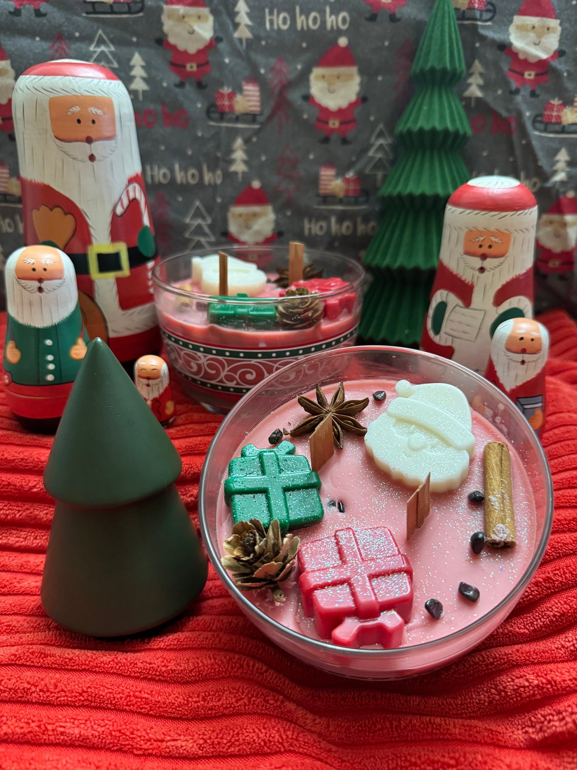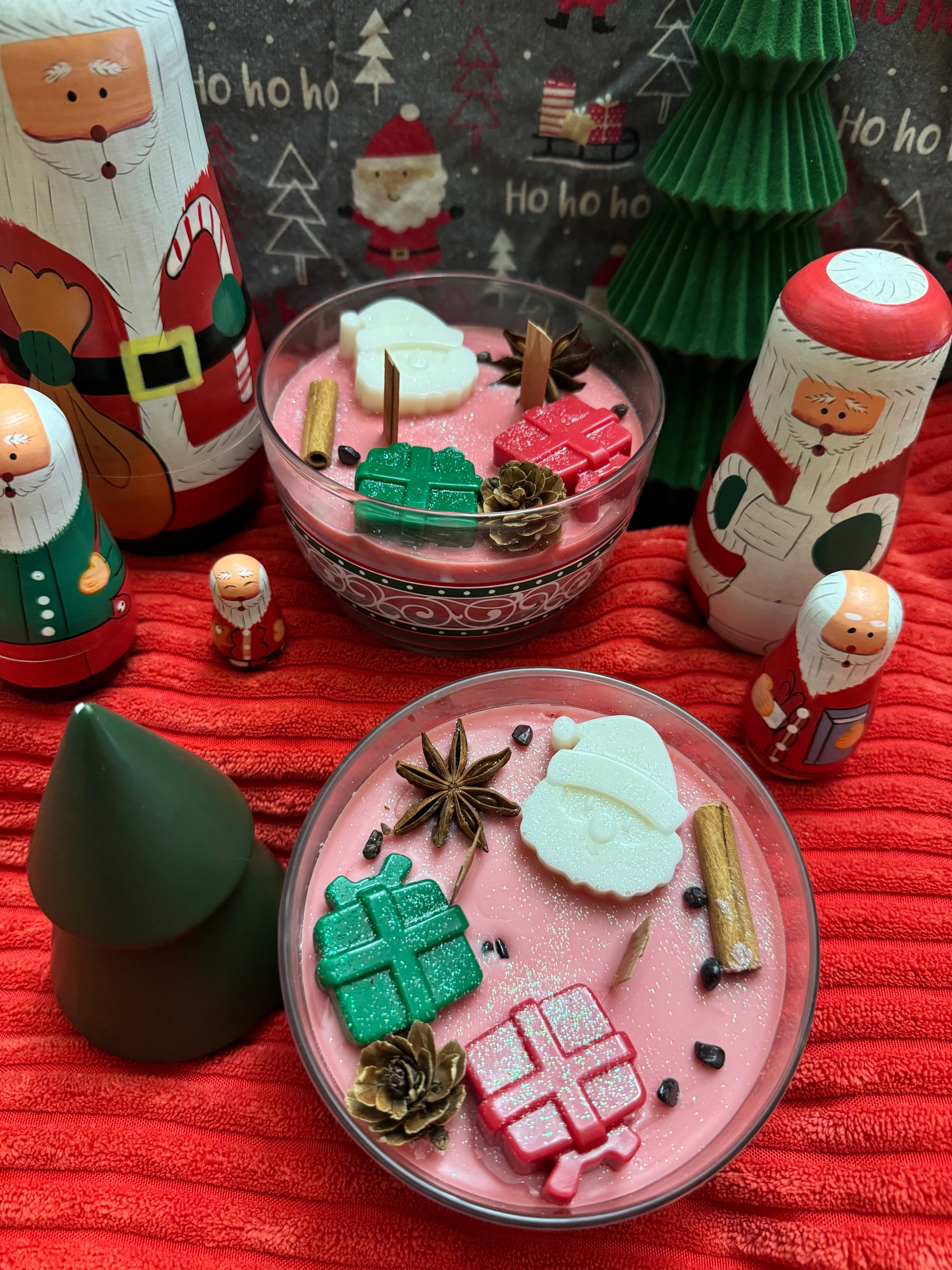 Vintage Libby Christmas snack bowl. ParaSoy/ Bees/ Coconut Wax Crackle Wood Wick Candle. Christmas Forest Scent. Juniper, spruce, apple, lemon, and black currant scented. Candle adorned with Pine Cones, Star Anise, Cinnamon Stick and Red Garnet Crystals. Price is per candle.